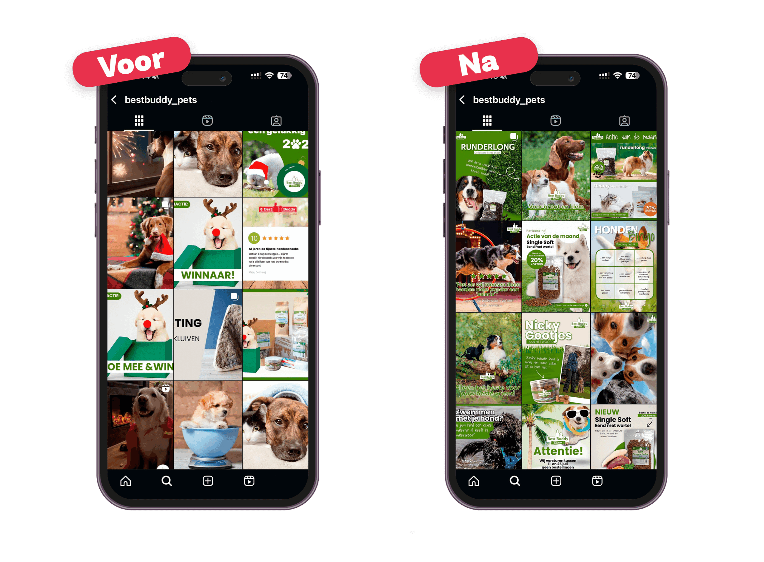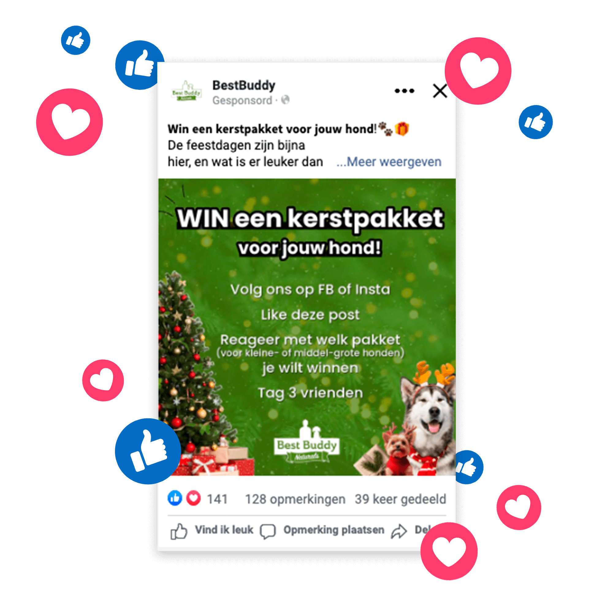 Een van de hoogtepunten was de kerstcampagne. In plaats van puur promotie, kozen we voor interactie. We vroegen volgers om hun leukste kerstfoto’s met hun hond of kat te delen. Het resultaat: