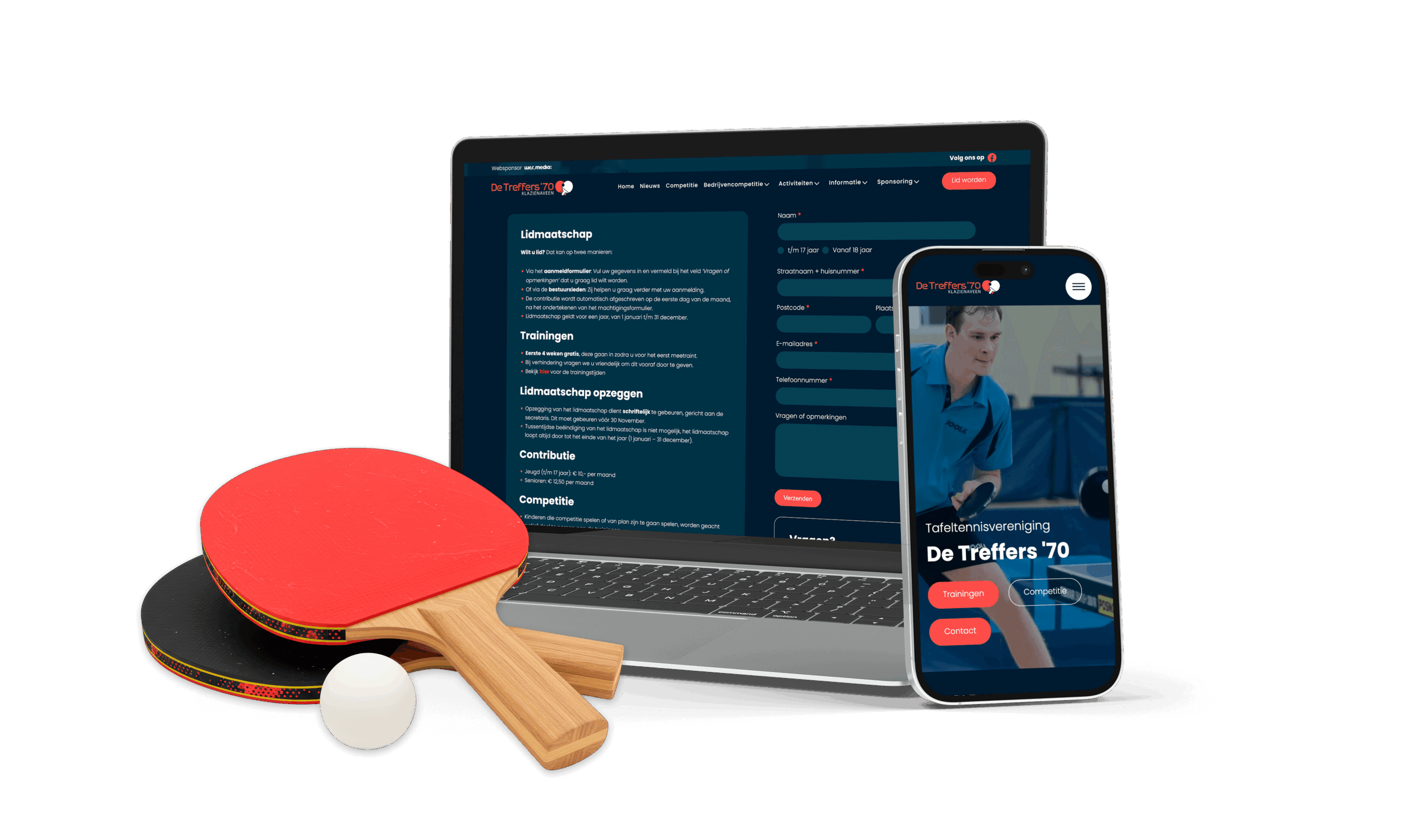 De Treffers ’70 is een actieve tafeltennisvereniging uit Klazienaveen met een rijke historie. Op sportief vlak weten ze al jaren hun leden te binden, maar de digitale kant van de vereniging kon wel een opfrisbeurt gebruiken. Het bestuur gaf aan dat de oude website niet meer voldeed. Het was lastig om nieuws actueel te houden, activiteiten goed zichtbaar te maken en nieuwe leden eenvoudig te laten inschrijven. Hun wens was een gebruiksvriendelijke en overzichtelijke website die aansluit bij de dagelijkse praktijk van de club. De nieuwe site moest niet alleen informatief zijn, maar ook bijdragen aan de betrokkenheid van leden, bedrijven en geïnteresseerden in de regio.